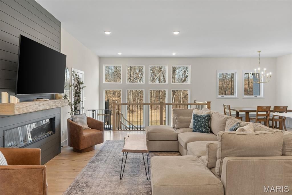 Tucked against a peaceful tree-lined backdrop, this stunning 4 bed, 3.5 bath home with a 3-car garage delivers the space, style, and privacy today's buyers are searching for. From the moment you walk in, you'll notice the abundance of natural light pouring through oversized windows creating a bright, welcoming feel throughout the open floor plan.The heart of the home is the quartz island kitchen, designed to impress with modern finishes, ample prep space, and seamless flow into the main living area - perfect for entertaining or everyday living. A dedicated home office/study offers the ideal setup for remote work or a quiet retreat.The primary suite is a true showstopper and features a spa-like bath with a frameless glass walk-in shower, soaking tub, and elevated finishes that make it feel like your own private getaway.With generously sized bedrooms, 3.5 baths, and a backyard that backs to trees for added privacy and peaceful views, this home checks every box. The fenced backyard, large patio and firepit add to the outdoor living space, along with the open deck.Schedule your showing today and see why buyers are making the move to modern, low-maintenance living. This home is in an ideal location in Washington, Missouri and is close to shopping, parks and walking trails.