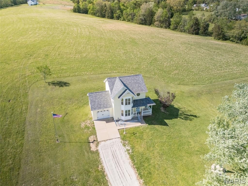 Rare opportunity! Custom-built 2-story home on 3 unrestricted acres in the Festus School District-first time ever offered. This well-maintained home features 3 bedrooms, 1.5 baths, and a welcoming wrap-around porch. The main level offers luxury vinyl flooring throughout, a bright living room with bay window, and a spacious kitchen with island, abundant cabinetry, and newer dishwasher. Breakfast room walks out to a large patio-ideal for outdoor entertaining. Main floor laundry (washer & dryer included) and convenient half bath. Upstairs includes a generous primary suite with bay window, bedroom #2 with private deck access and scenic views, and bedroom #3 with a large closet. Full bath features a claw foot tub, separate shower, and double bowl vanity. Unfinished lower level includes egress window and rough-in for future bath-great potential for additional living space. Oversized 1-car garage with insulated garage doors and service to patio. Recent updates include new roof, fresh interior paint, and pergola flooring on the upper level. Excellent location with privacy and flexibility-no restrictions! Move in ready!