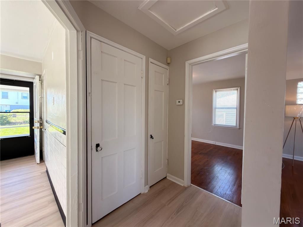 This 2-bedroom, 1-bathroom home sits on a spacious corner lot in a quiet, established neighborhood. The main level features a combination of hardwood floors and luxury laminate, and the interior has been updated with new appliances included. The home is very clean and well maintained throughout, making it an easy move-in for any buyer. The walk-out basement offers additional space that could work for storage, a hobby room, or casual entertaining. Off-street parking is available, and the low-maintenance exterior keeps upkeep manageable. Conveniently located within a reasonable distance of the airport, UMSL, and everyday amenities, this solid starter home would also make a great investment opportunity for those looking to add to their portfolio.